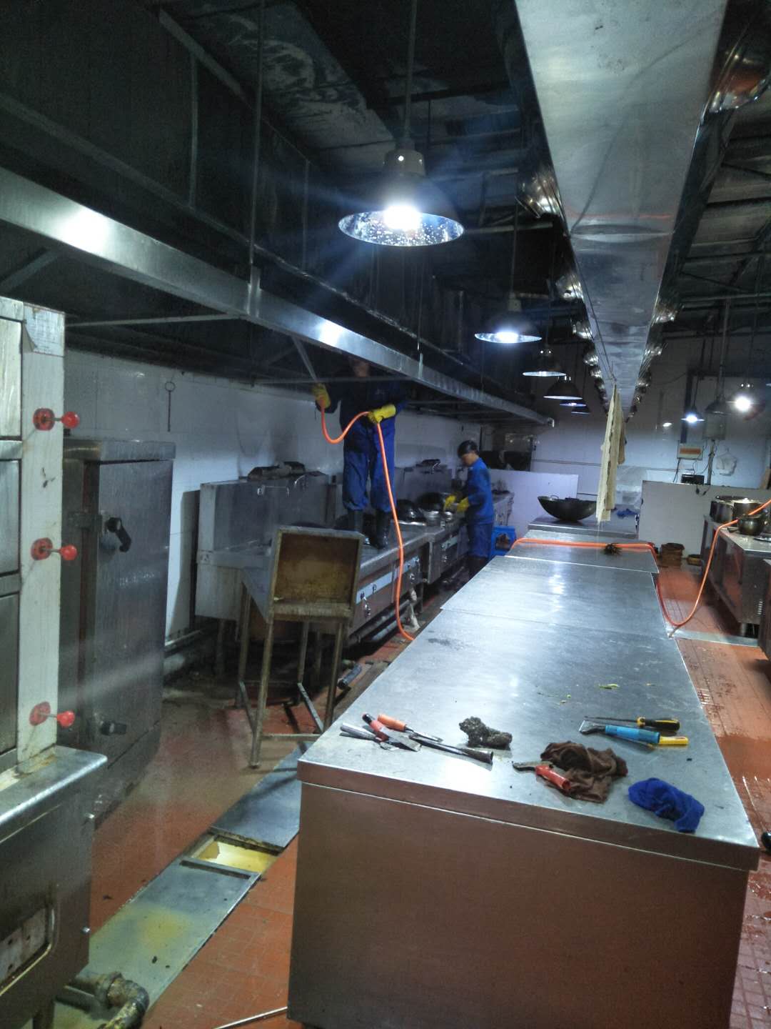 煙道是賓館、酒樓廚房的基礎(chǔ)設(shè)施,極易藏污納垢,是清理的死角。同時煙道是消防、衛(wèi)生、防疫部門檢查的重點區(qū)域.煙道、煙罩若不經(jīng)常清洗,積油越積越多,順著煙罩自然倒流,不僅影響飯菜質(zhì)量,而且還有損酒店信譽。同時,煙道中易寄生老鼠、蟑螂,不符合國家衛(wèi)生標準.油膩膠狀物長期扒附在金屬表面,還會腐蝕金屬材料,縮短煙道使用壽命。由于酒店食堂廚房排煙罩因長期積油,煙道、煙罩常年處于高溫工作環(huán)境,油煙氣化形成積油、積炭或油膩的膠狀物。很容易引起火災(zāi)。使用專用的煙道、煙罩清潔劑,對煙道金屬材料清潔后,能在材料表面附著一層保護膜.在攝氏80度時,自動散發(fā)二氧化碳阻止燃燒.徹底解決客戶的后顧之憂。