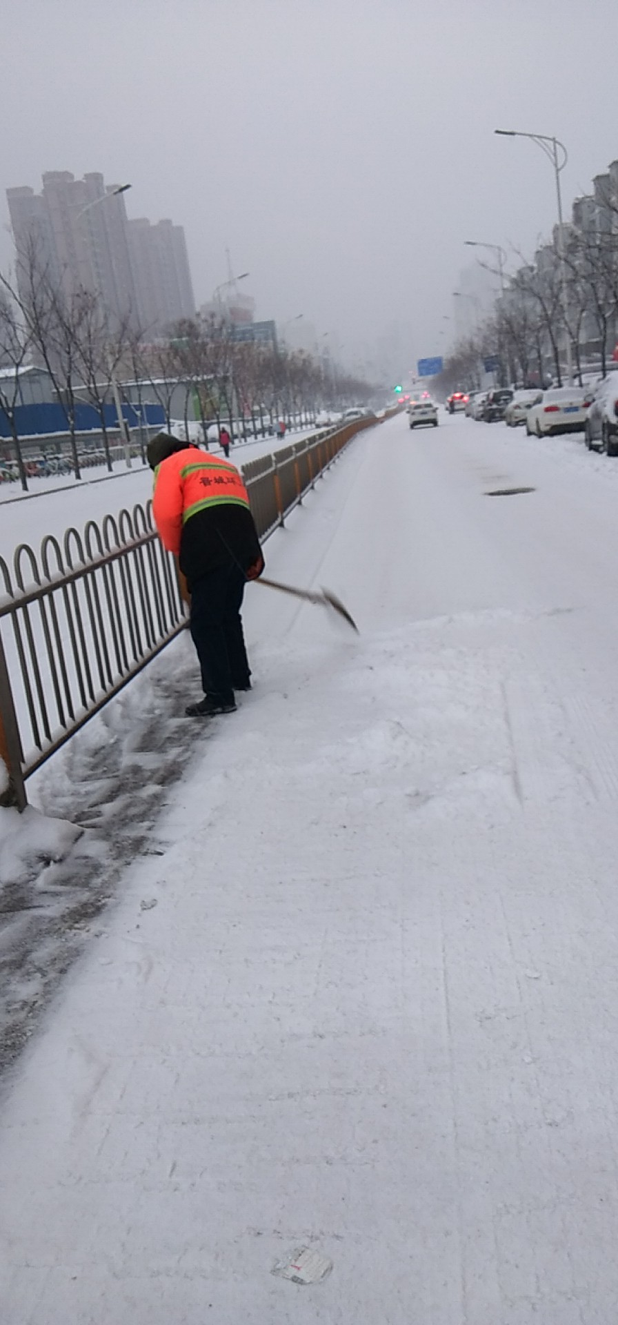 新年的第一場大雪,到處銀裝素裹,扮美了整個晉城,但大雪帶來美景的同時,也給大家的出行帶來了不便。為保障大雪期間出行安全,潔霸公司各保潔點的負責(zé)人積極組織員工進行主干道積雪清掃,在除雪過程中,雖然天氣寒冷,但大家除雪的熱情卻不減,大家有的撒融雪劑,有的 清掃積雪,有的用鏟子除冰,奏響鏟雪破冰進行曲。