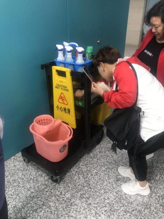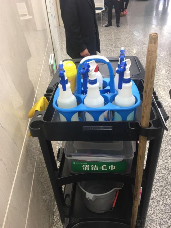 保潔車干凈、整潔、配備齊全。從物品的分類,合理的擺放等細(xì)節(jié)方面充分體現(xiàn)了公司的管理方式,保潔員的整體素質(zhì)。