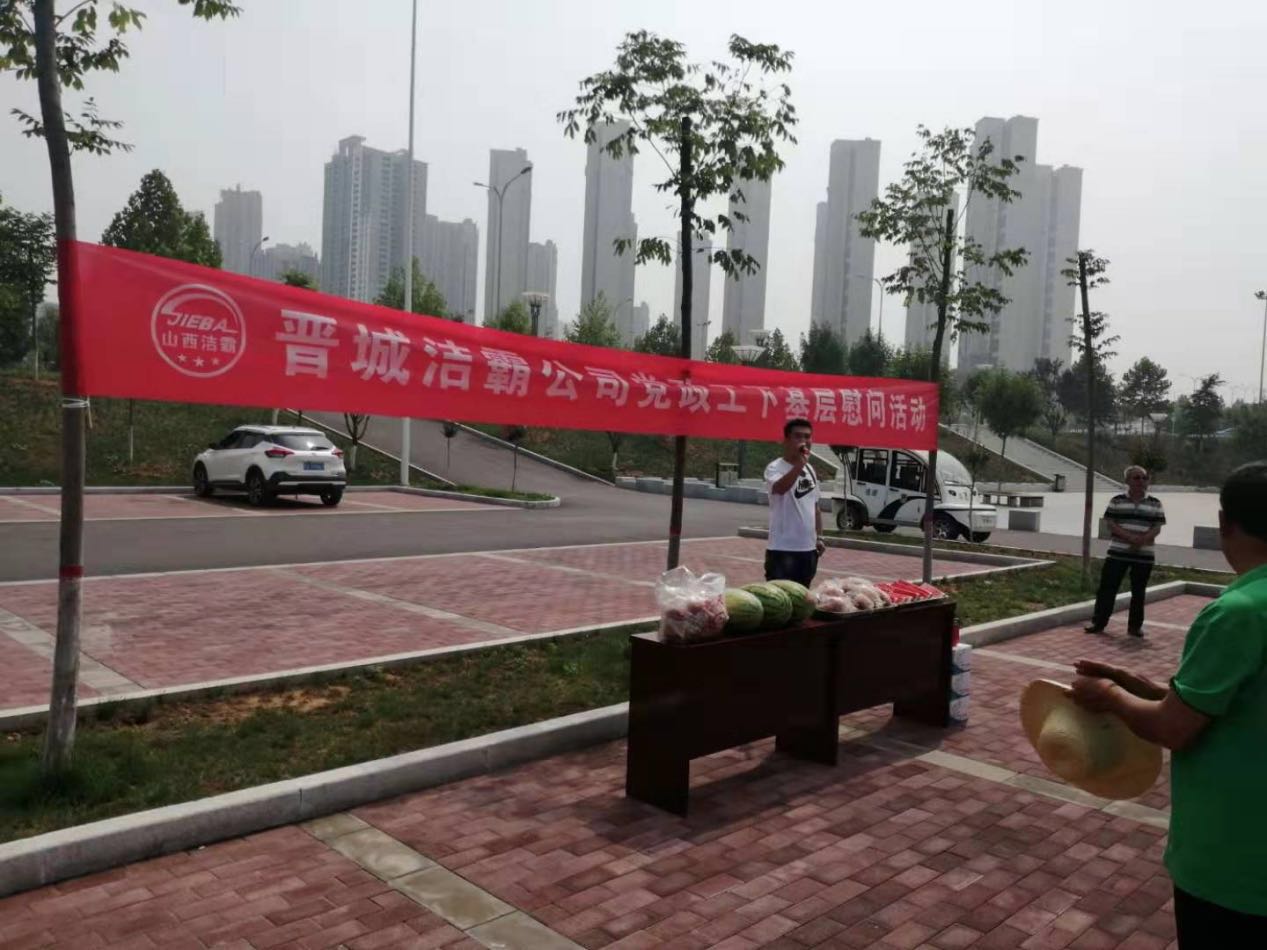 暑期盛夏,赤日炎炎7月19日上午,晉城潔霸公司黨政工暑期“情系一線”下基層慰問系列活動啟動。在工會主席崔偉同志率領(lǐng)下,慰問活動小組首站來到了晉城市帶狀公園,看望了辛勤奮戰(zhàn)在園林一線的員工,給員工送去了面包、西瓜、白糖等慰問品,表達了公司領(lǐng)導的親切關(guān)懷。