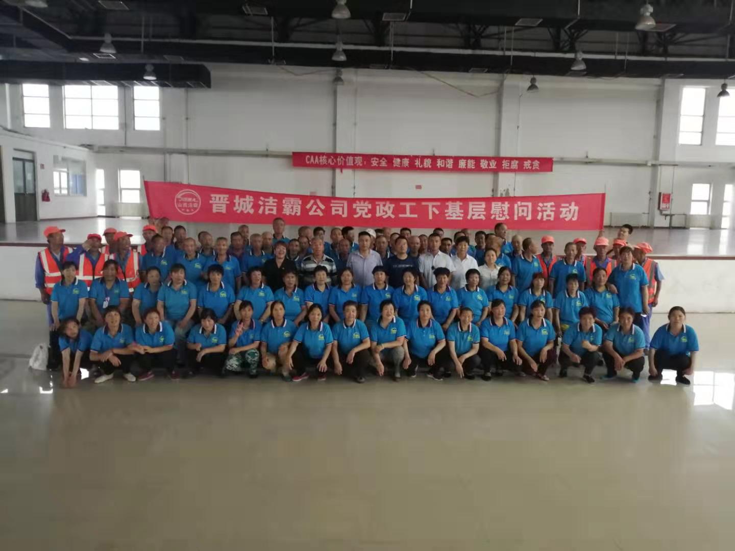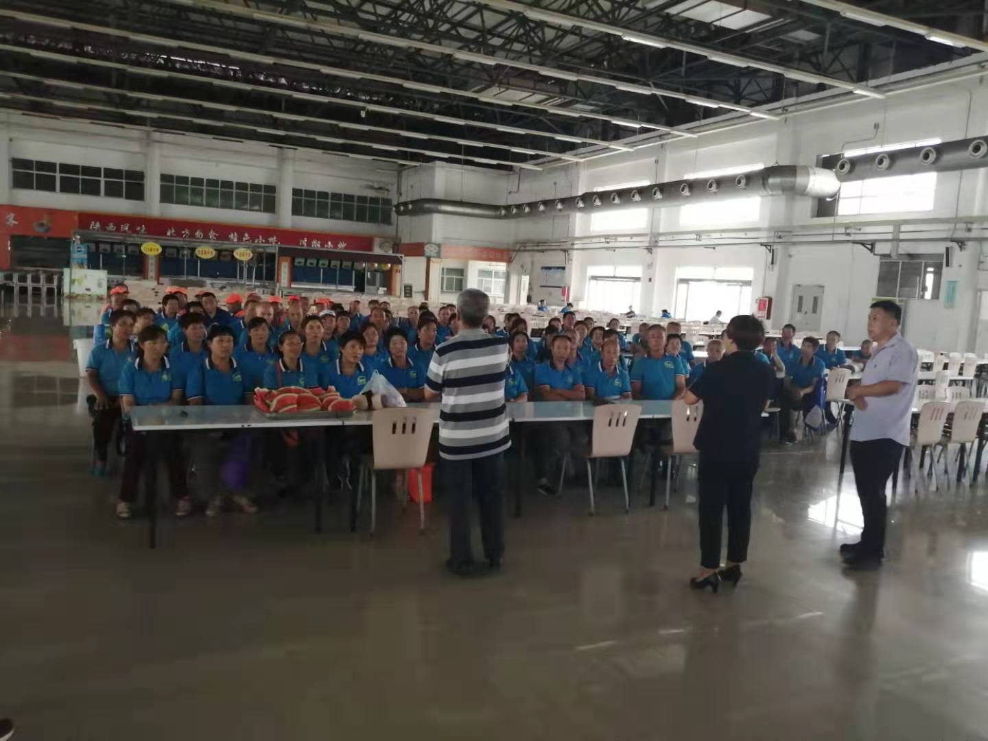 在富士康餐廳二樓,利用工作人員切西瓜的間隙,公司總經(jīng)理程晉軍作了簡(jiǎn)短的講話(huà)。他說(shuō),前一段時(shí)間,公司召開(kāi)了“安康杯”勞動(dòng)競(jìng)賽動(dòng)員大會(huì),大家要提高安全意識(shí),始終把安全工作放在心上。他囑托大家在夏季工作中一定要注意防暑,感謝大家在酷暑下依舊兢兢業(yè)業(yè)奮斗在各自的工作崗位上。工會(huì)主席崔偉也作了簡(jiǎn)要發(fā)言,他說(shuō),今年是潔霸公司成立二十周年,希望大家在工作中繼續(xù)發(fā)揚(yáng)潔霸精神,積極樹(shù)立潔霸形象,為公司爭(zhēng)光。