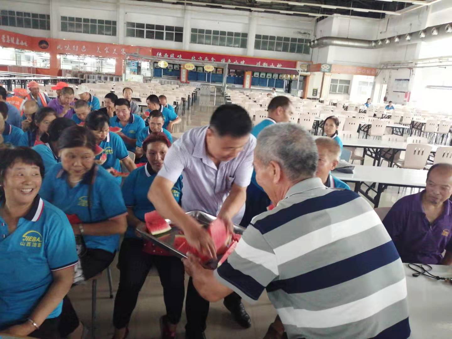 緊接著,程總親自為大家遞上了西瓜。一份清涼,一份關(guān)懷,一份愛(ài)心。一塊塊西瓜不僅送去了公司的關(guān)懷,更是極大鼓舞了一線(xiàn)員工的士氣。大家吃著西瓜,爽在嘴里,甜在心里,臉上露出了開(kāi)心的笑容。
