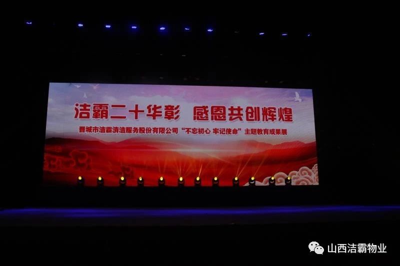 11月28日晚,晉城市潔霸清潔服務股份有限公司二十周年慶典晚會在晉城市文體宮隆重舉行。潔霸公司員工喜氣洋洋、歡聚一堂,共同觀看了慶典演出,共賀潔霸公司成立二十周年!