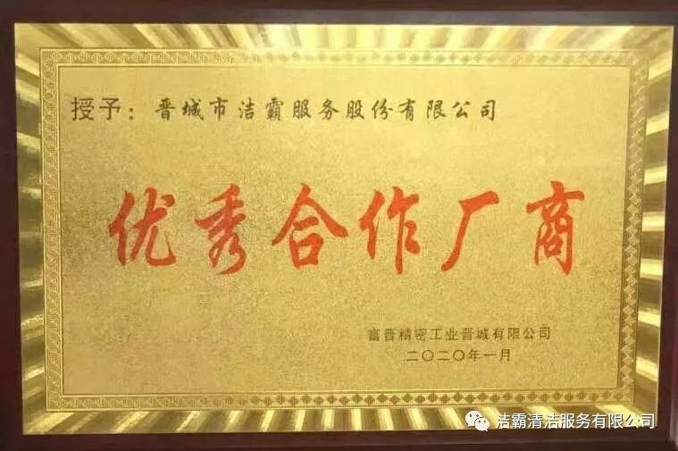 1月21日,富士康(晉城)科技工業(yè)園區(qū)召開2019年綠化環(huán)衛(wèi)服務廠商表彰大會。會上,我公司喜獲“優(yōu)秀合作廠商”稱號。
