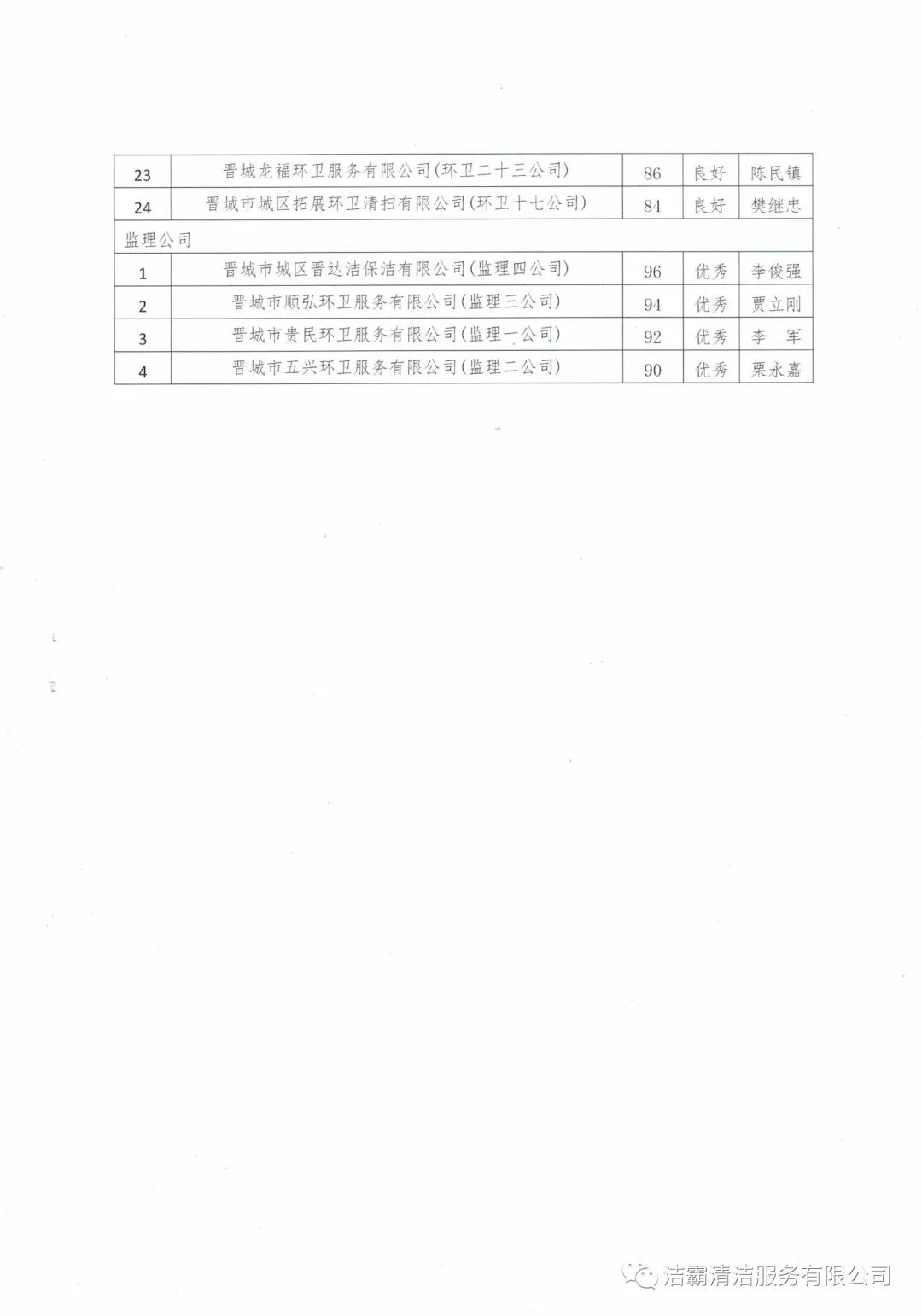 2020年10月28日—10月30日,晉城市城區(qū)市容環(huán)衛(wèi)中心由中心督查室牽頭組織,中心班子成員分別帶隊,機關全體人員參加,對各作業(yè)公司道路清掃路段、垃圾收集站(點)和公廁采用交叉檢查和隨機抽查的方式對24個作業(yè)公司的環(huán)境衛(wèi)生作業(yè)質量和4個監(jiān)理公司的日常檢查情況進行了考核。晉城市潔霸清潔服務股份有限公司所屬的環(huán)衛(wèi)四公司分數(shù)最高,名列第一。