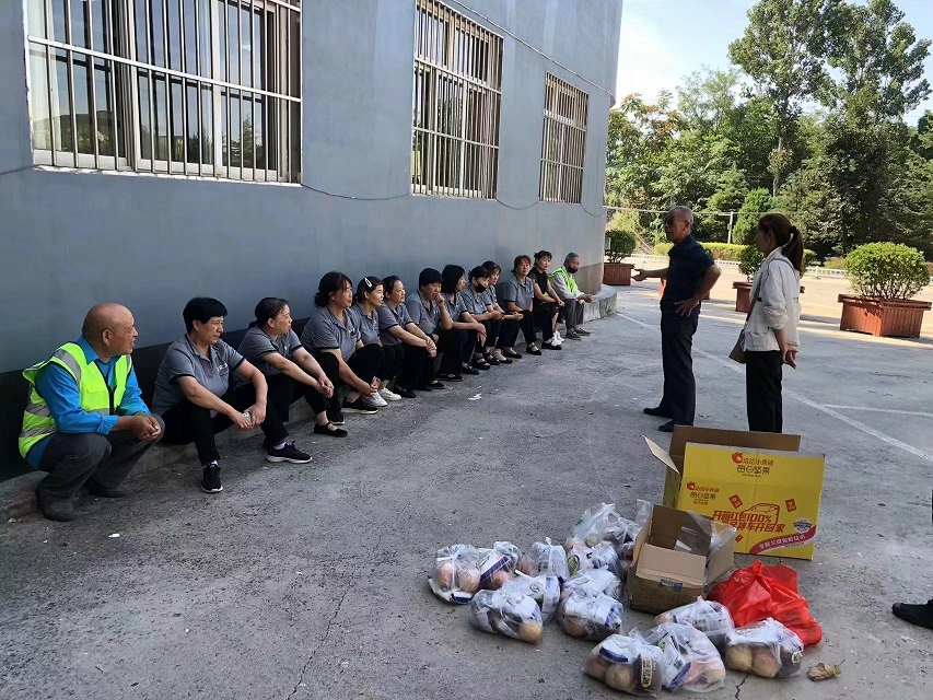 工會主席崔偉一行先后走訪萬達廣場、山西科技學院、晉城市金鳳凰廣場、鳳西廣場、白馬寺、青蓮寺、陽城北留潔霸洗業(yè)等地,對戶外高溫下作業(yè)的高空清洗員工、物業(yè)保潔員工、環(huán)衛(wèi)員工、園林綠化員工及洗衣廠員工等一線勞動者進行慰問。崔主席充分肯定了高溫下堅持奮戰(zhàn)在一線員工的敬業(yè)精神,感謝他們?yōu)闈嵃浴皯?zhàn)高溫、斗酷暑”付出的辛勤勞動,并將面包、桃子、白糖等慰問品送到員工手中,讓高溫下堅守在一線的員工感受到來自潔霸大家庭的關(guān)愛。