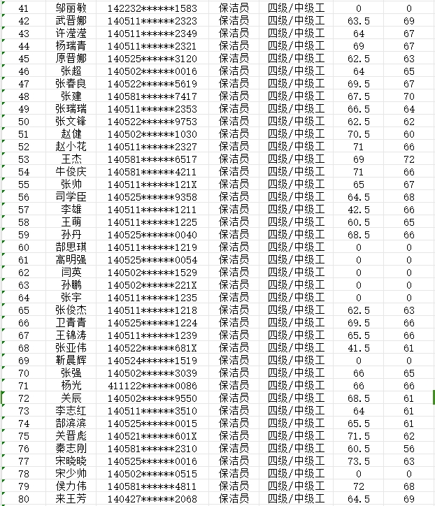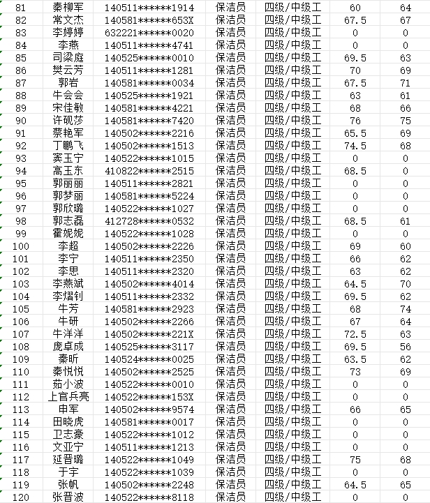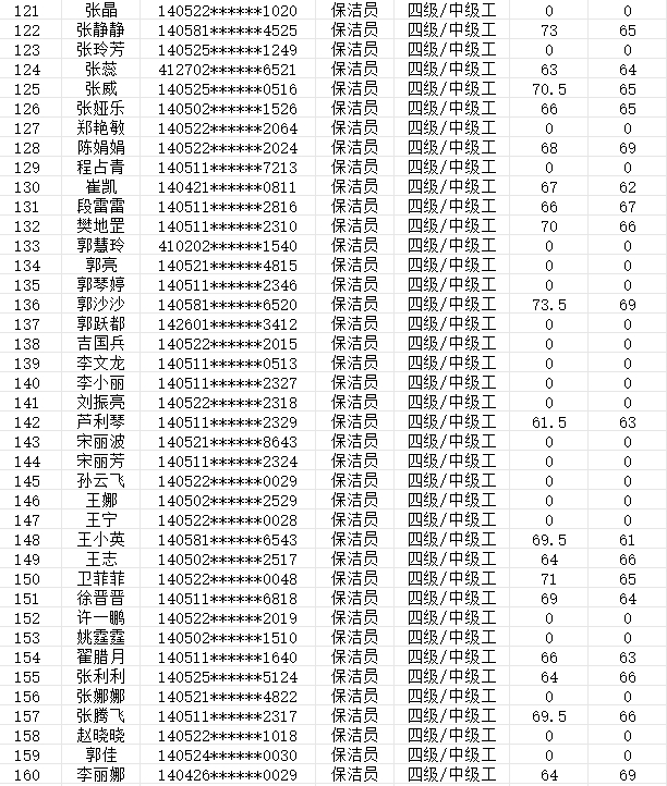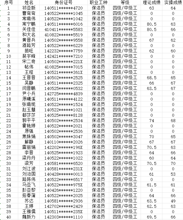 晉城市潔霸清潔服務股份有限公司職業(yè)技能等級認定中心2024年2月3日第9批保潔員中級認定人員成績公示
