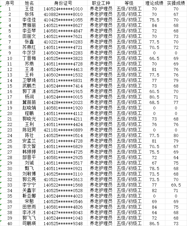 2024年7月14日第21批養(yǎng)老護理員初級認定人員成績公示