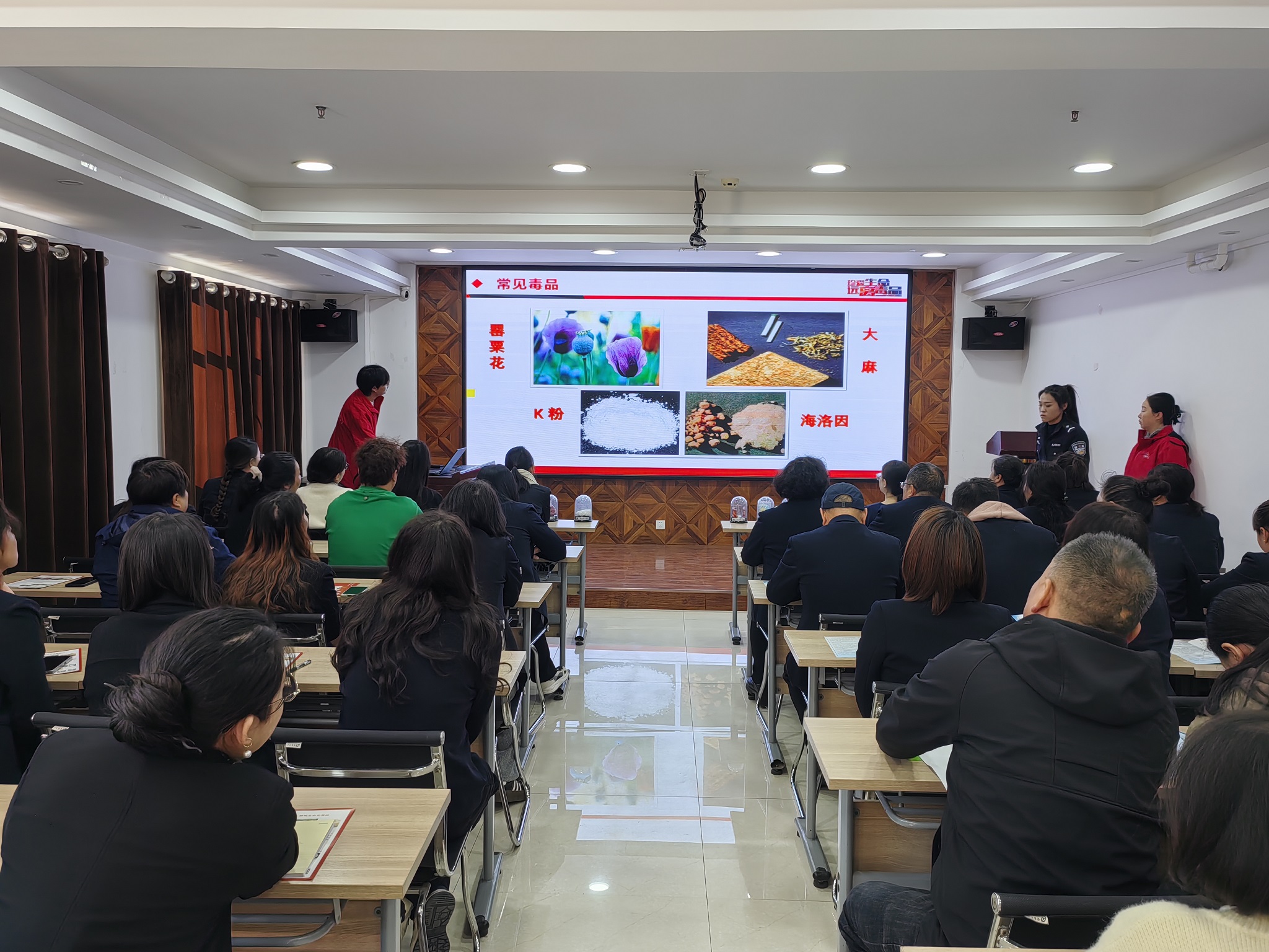 活動(dòng)中,仁愛社工工作人員向公司員工發(fā)放了“健康人生綠色無毒”宣傳折頁,講解了新型毒品的種類、毒品的共同特征、毒品的危害及如何防范毒品危害等知識(shí),現(xiàn)場(chǎng)展示海洛因、麻古、美沙酮、奶茶粉、跳跳糖、開心水等毒品模型,講解了各種毒品的特征、危害以及辨別方法,并通過提問互動(dòng)交流,使大家對(duì)毒品的認(rèn)識(shí)更加深刻。呼吁大家要從自己做起,從現(xiàn)在做起,培養(yǎng)健康向上的興趣愛好,時(shí)刻樹立自我保護(hù)意識(shí),正確認(rèn)識(shí)毒品,堅(jiān)決抵御毒品誘惑,珍愛生命。 本次活動(dòng)的開展,使公司員工進(jìn)一步認(rèn)識(shí)了毒品的危害,切實(shí)提高了大家的禁毒意識(shí)和拒毒、防毒能力,增強(qiáng)了法治觀念,營(yíng)造了積極參與禁毒的良好氛圍。 活動(dòng)中,西街派出所民警還對(duì)防范電信詐騙的知識(shí)向大家作了細(xì)致講解。 |
